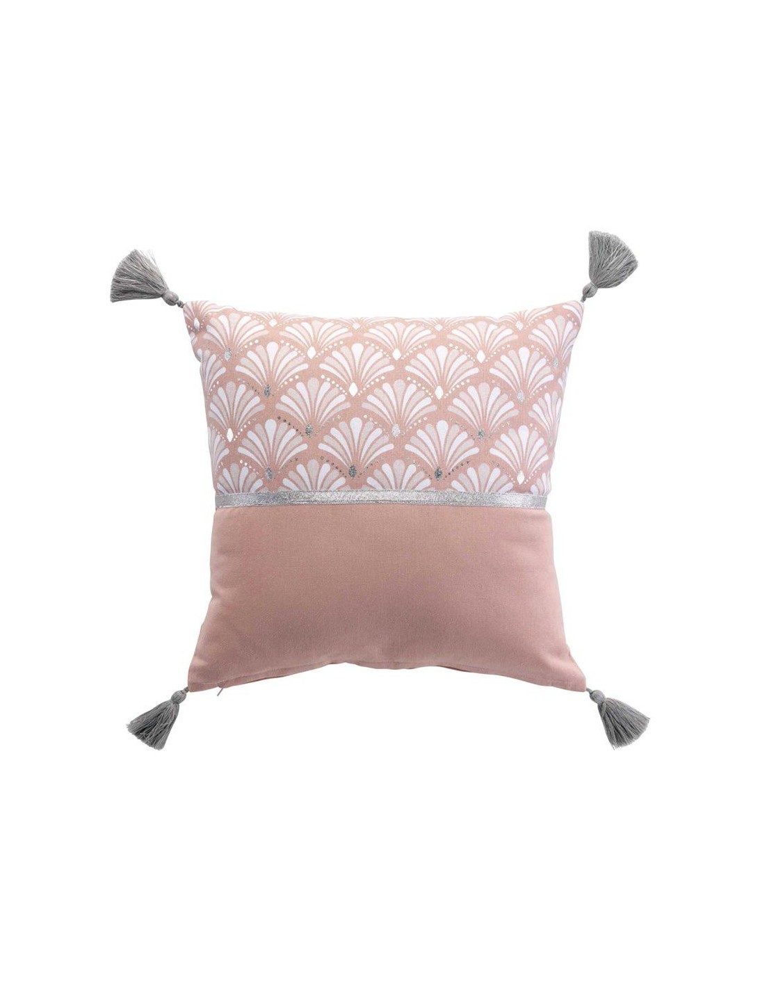 coussin dehous. compr. franges 45x45 cm coton recycle imp.+or azeris des. place