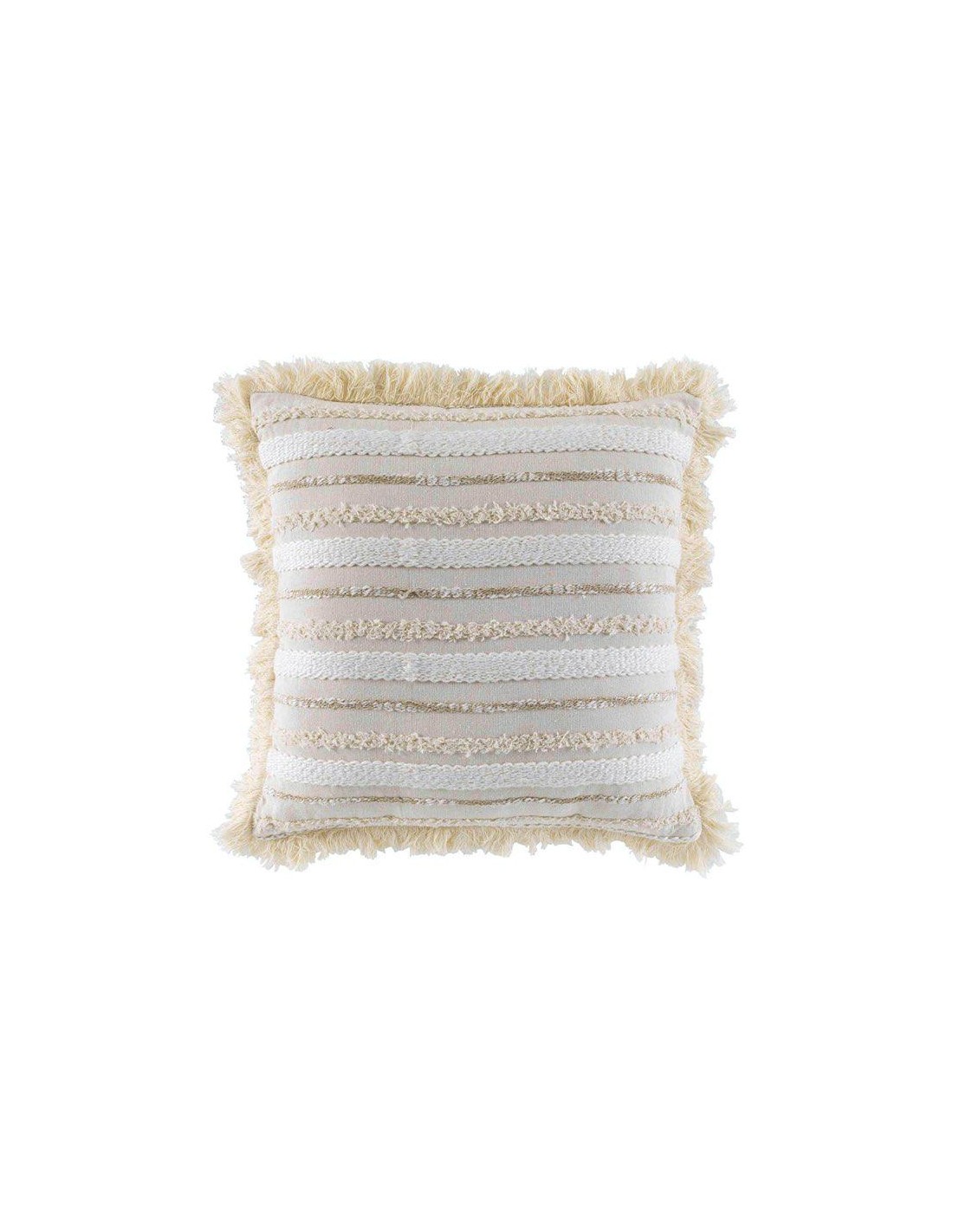 coussin dehoussable pompons 40x40 cm coton imp. metallise artchic rose des place