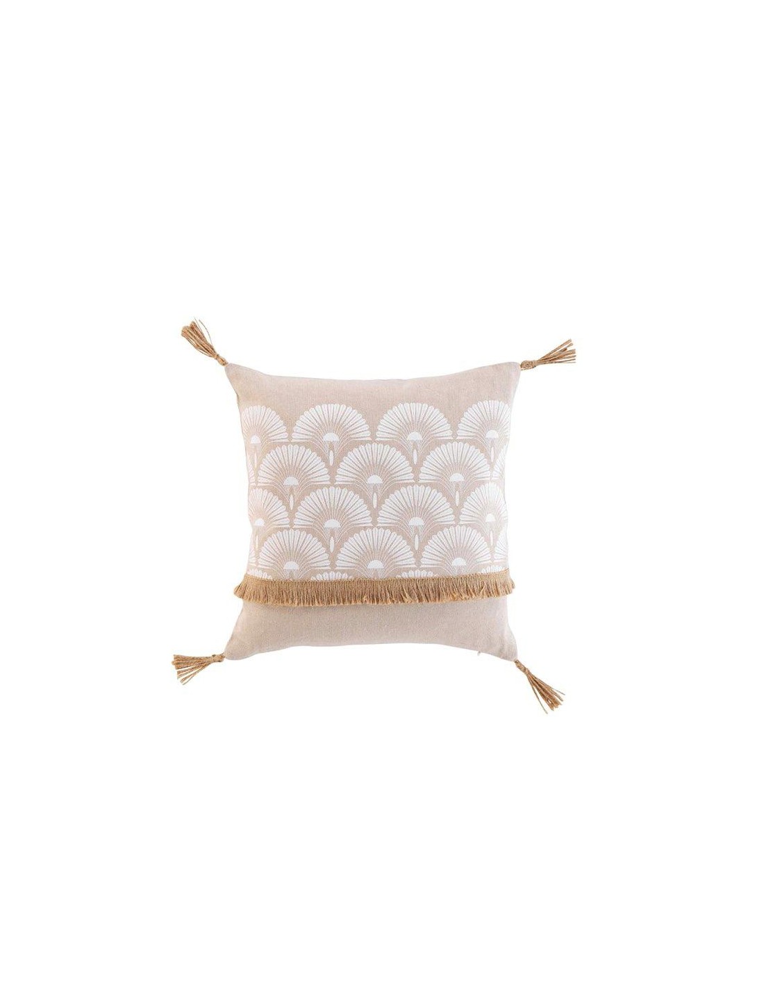 coussin dehous. compr. franges 45x45 cm coton recycle imp.+or azeris des. place