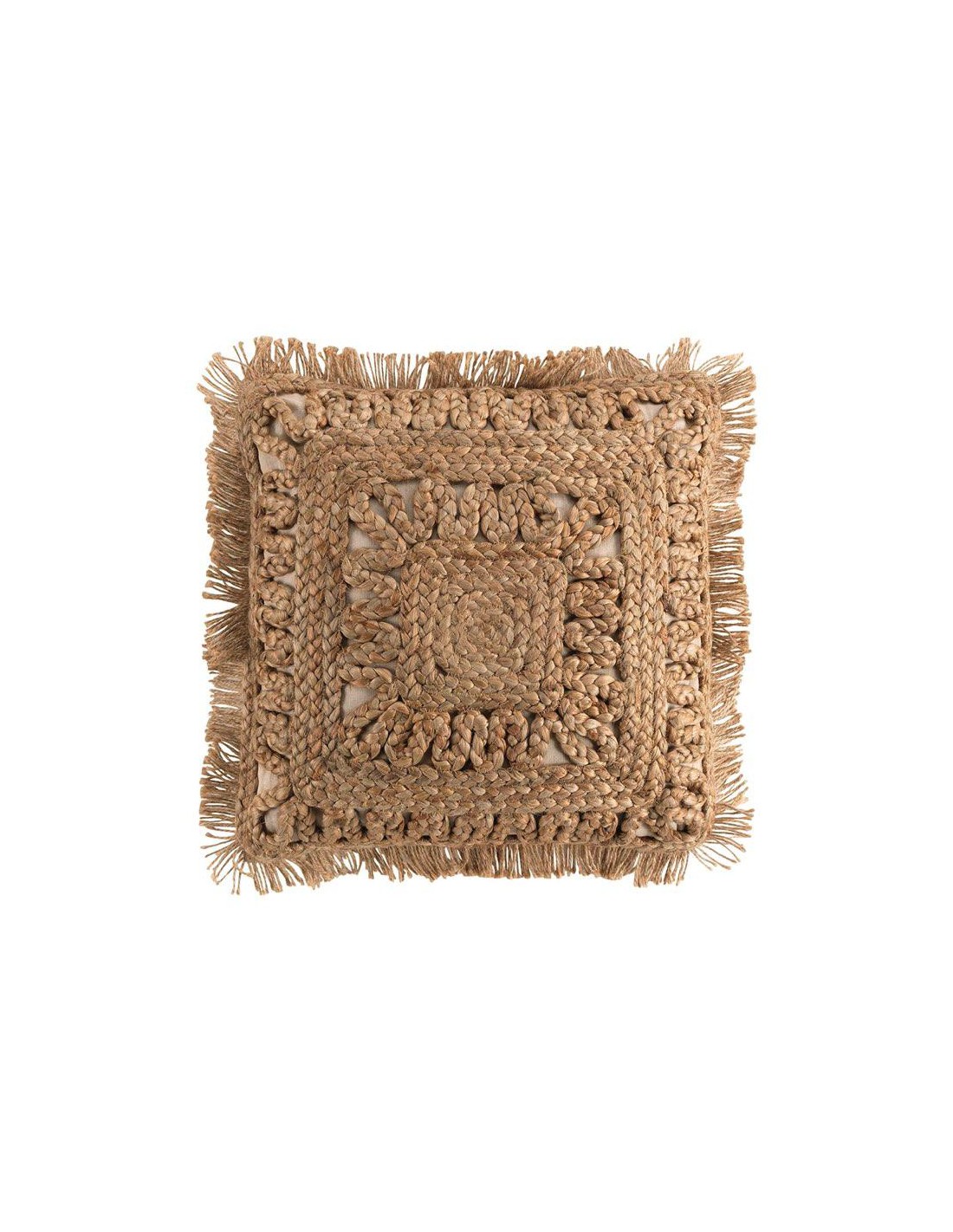 coussin dehous. compr. pompons 40x40 cm jute imprime/polycoton uni kalinda noir