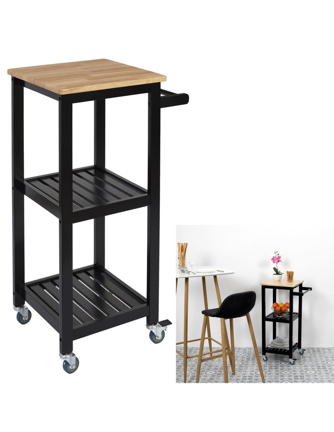 Ce buffet roulant é trois niveaux est fabriqué é la main en fer et en bois massif dans une belle finition naturelle. Laissez le chariot roulant é 3 niveaux étre votre compagnon polyvalent pour organiser et décorer différentes piéces, élevant votre décoration intérieure é de nouveaux sommets de créativité et d'organisation.