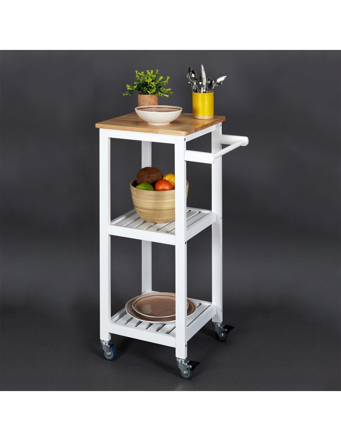 Ce buffet roulant é trois niveaux est fabriqué é la main en fer et en bois massif dans une belle finition naturelle. Laissez le chariot roulant é 3 niveaux étre votre compagnon polyvalent pour organiser et décorer différentes piéces, élevant votre décoration intérieure é de nouveaux sommets de créativité et d'organisation.