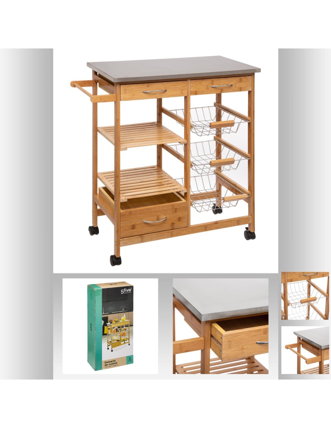 Ce buffet roulant é trois niveaux est fabriqué é la main en fer et en bois massif dans une belle finition naturelle. Laissez le chariot roulant é 3 niveaux étre votre compagnon polyvalent pour organiser et décorer différentes piéces, élevant votre décoration intérieure é de nouveaux sommets de créativité et d'organisation.