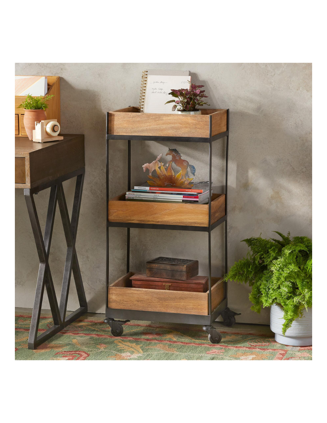 Ce buffet roulant é trois niveaux est fabriqué é la main en fer et en bois massif dans une belle finition naturelle. Laissez le chariot roulant é 3 niveaux étre votre compagnon polyvalent pour organiser et décorer différentes piéces, élevant votre décoration intérieure é de nouveaux sommets de créativité et d'organisation.