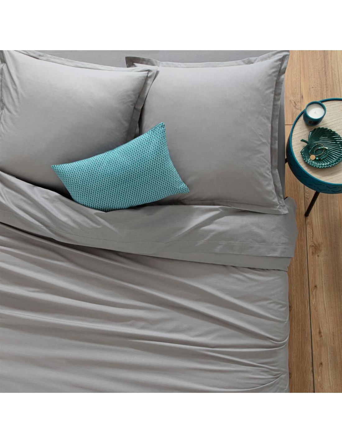 1643191 - drap housse 2 personnes 140 x 190 cm percale uni 78 fils percaline gri