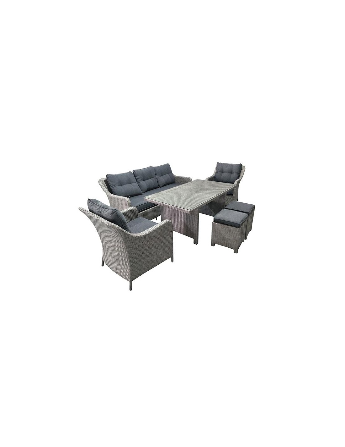 DIMENSION:Fauteuils inclinables x 2 : 71 x 76 x 85 cmCanapé 3 places : 191 x 76 x 85 cmTable : 160 x 86 x 71 cmPouf : 45 x 45 x 45 cmMatiére de la structure:Fauteuils & Canapé Aluminium traité epoxy Résine resistant UVTissu deperlantDIMENSION:Fauteuils inclinables x 2 : 71 x 76 x 85 cmCanapé 3 places : 191 x 76 x 85 cmTable : 160 x 86 x 71...