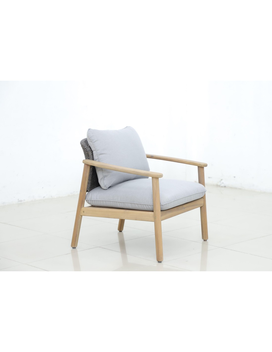 Nombre de places:5Matériau du cadre : Bois d'eucalyptusMatériau du plateau de table: GRCMatériau du cadre du siége: Aluminium, CordeTapisserie Polyester water deperlanMatériau de remplissage du coussin :Fibre, MousseHauteur du produit (cm) 3 places : 82,5 | Fauteuil : 82,5 | Table basse : 38Largeur du produit (cm) 3 places : 193 | Fauteuil : 69,5 | Table...