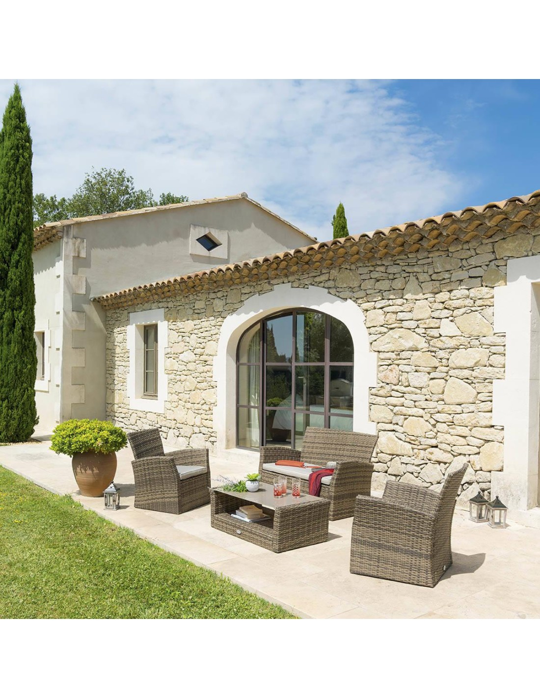 Le salon LUXOR LOUNGE SET 4 places est lensemble Idéal pour décorer avec style votre maison ou votre exterieur. C'est le parfait équilibre entre DESIGN /CONFORT et ROBUSTESSE. Les lignes fluides de ce salon caractérisent le style jeune et moderne pour décorer avec personnalité les environnements intérieurs et extérieurs. La forme sinueuse et les coussins...