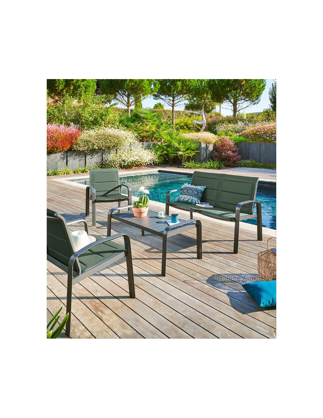 SALON 5 PLACESFauteuil 73 x 81 x 70 cmCanapé 3 places : 203 x 81 x 70 cmTable : 126 x 65 x 37 cmMatiére de la Structure:Fauteuils & Canapé Aluminium traité époxy Tissu déperlantSALON 5 PLACESFauteuil 73 x 81 x 70 cmCanapé 3 places : 203 x 81 x 70 cmTable : 126 x 65 x 37 cmMatiére de la Structure:Fauteuils & Canapé Aluminium traité époxy Tissu...