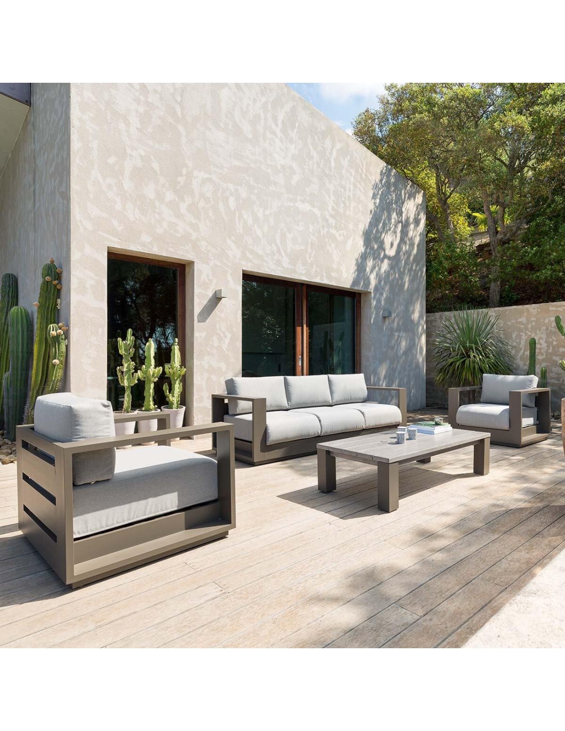 SALON en PP resistant aux UV Composé de :1 sofa L119*W73*H77*SH43cm2 fauteuils 74.7*69.9*76.9cm1 table basse 96*54.8*40cmUn confort absolu est offert par le Salon FOLIUM. Tant la hauteur d'assise basse que le dossier haut et incliné assurent le confort et le bien-étre .Les accoudoirs latéraux y contribuent et promettent une commodité supplémentaire.Le...
