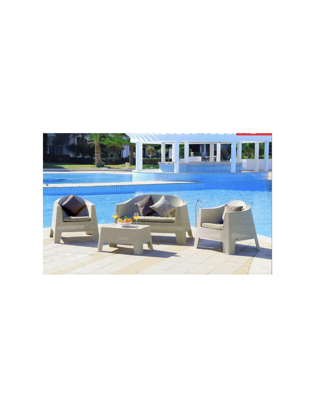 Profitez d'un moment é l'air frais sur ce fauteuil d'extérieur ultra stylé et modulable selon vos désirs ! L'ensemble IBIZA comprend:-1 Canapé 2 places (dimension:L. 168 x P. 73 x H. 76 cm)-1 Fauteuil ( dimension : L. 84 x P. 73 x H. 76 cm )-1 Table basse ( dimension :L.53 x P.84 cm )Composition : Plastique - PPTissu déperlant , WaterproofProfitez d'un...