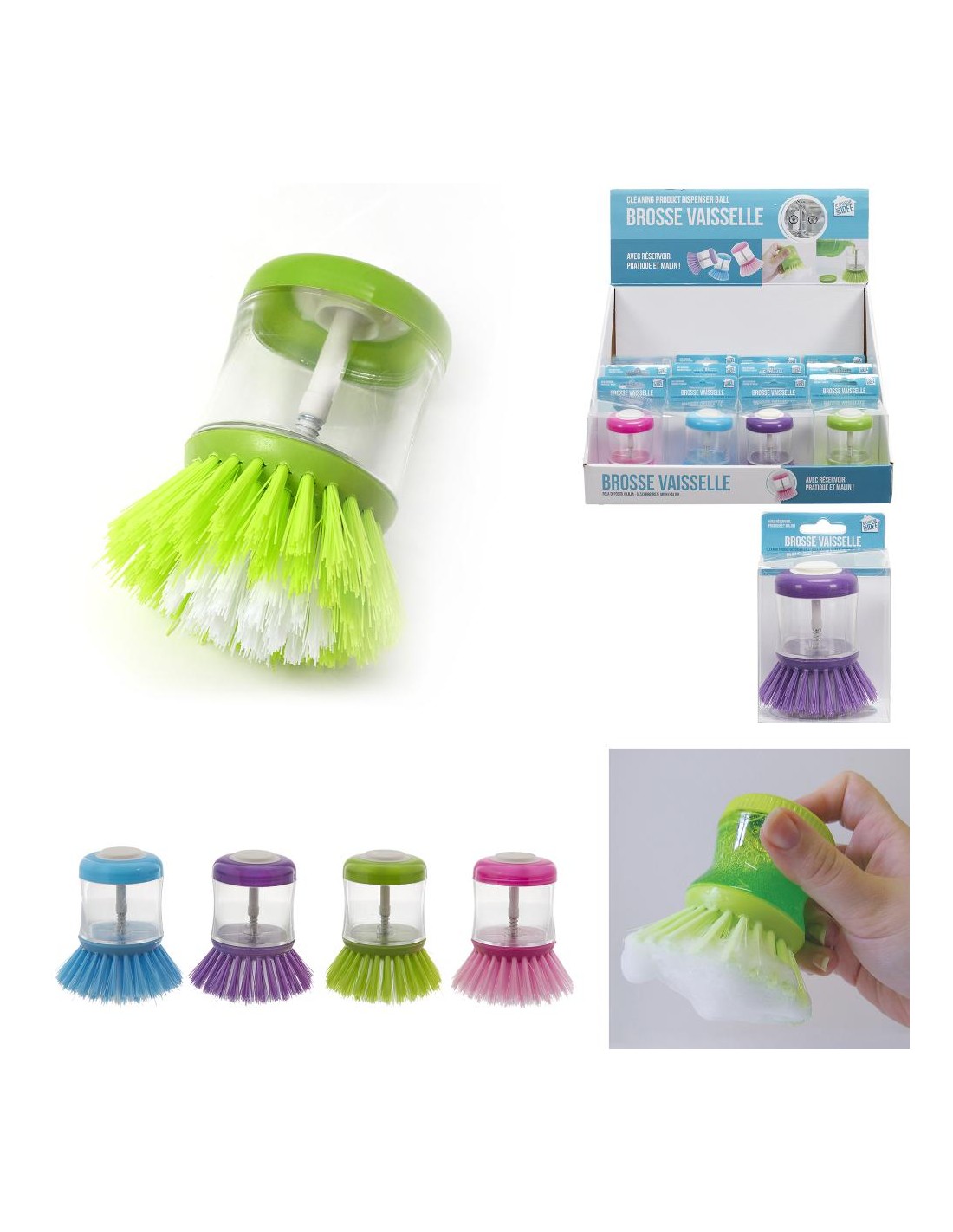 Cette brosse é vaisslle présente un réservoir en silicone pour davantage d'efficacité ! - Composition : silicone