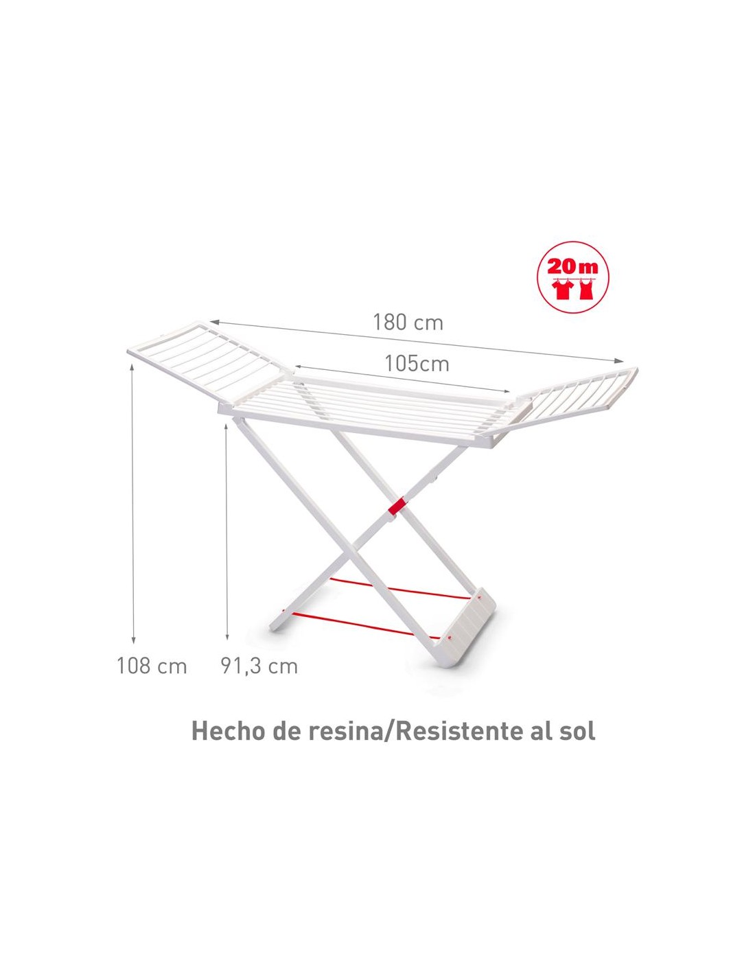 20 métres de surface d'étendage - Supporte 20kg de linge - Tubes larges 9.5mm limitant le marquage du linge - Léger - Crochet de blocage - Protections d'angle anti-choc - Idéal petite surface