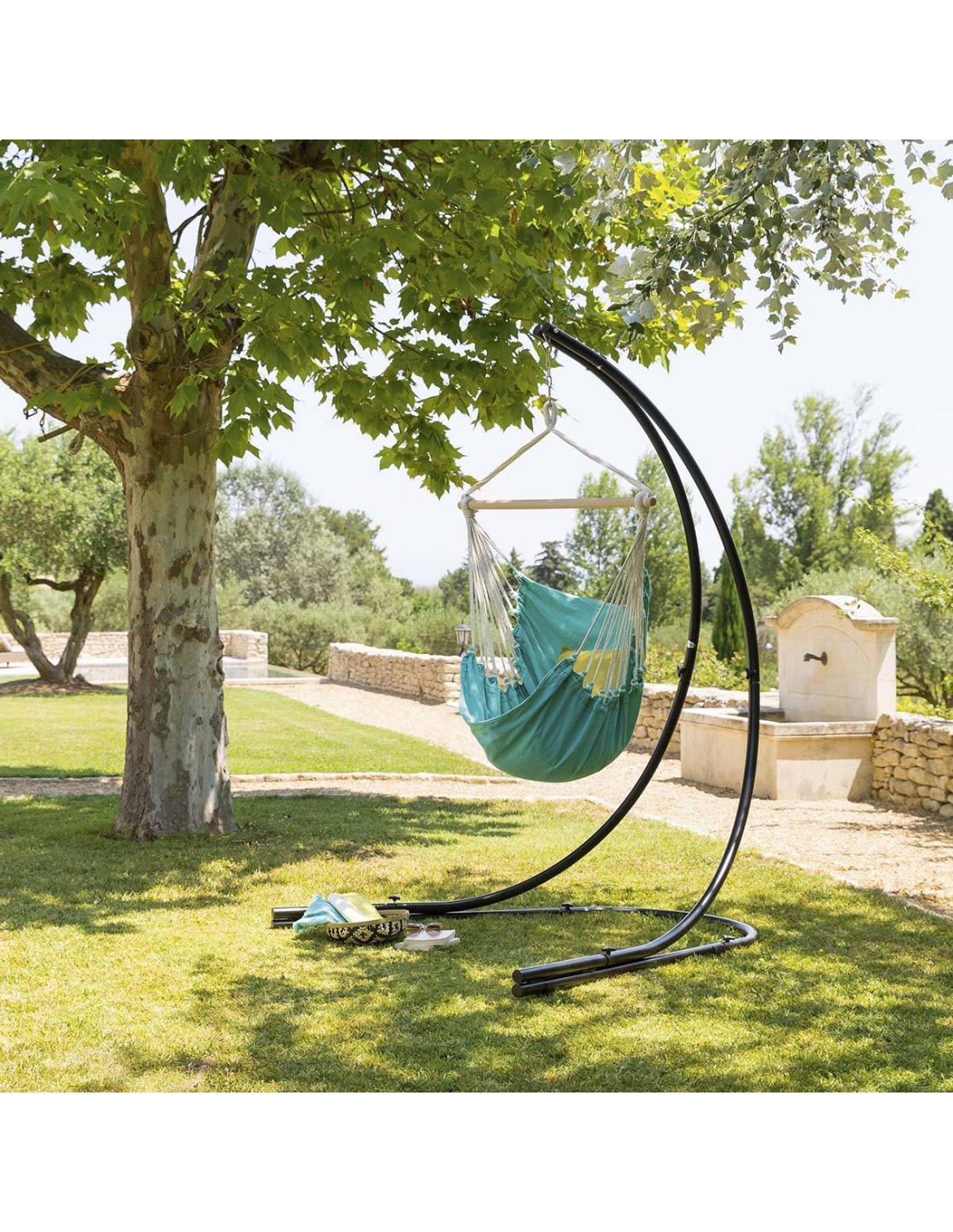 Dimensions : L. 115 x P. 186 x H. 179 cm. Matiére de la structure : Acier traité époxy. Matiére de l'assise : Polyester enduit PVC (Texaline). Matiére toile & coussin : Polyester.