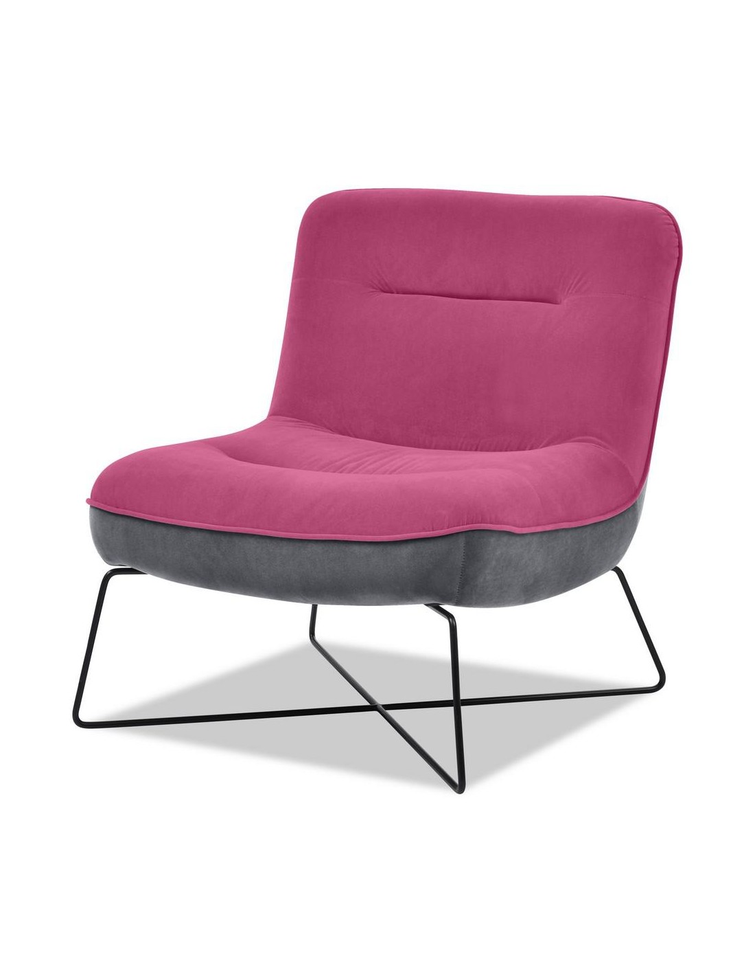 Structure en panneau de particules, assise mousse en polyuréthane recouverte de tissu microfibre velvet . Disponible en plu- sieurs coloris. Dim. : 70 x 64 x 75 cm