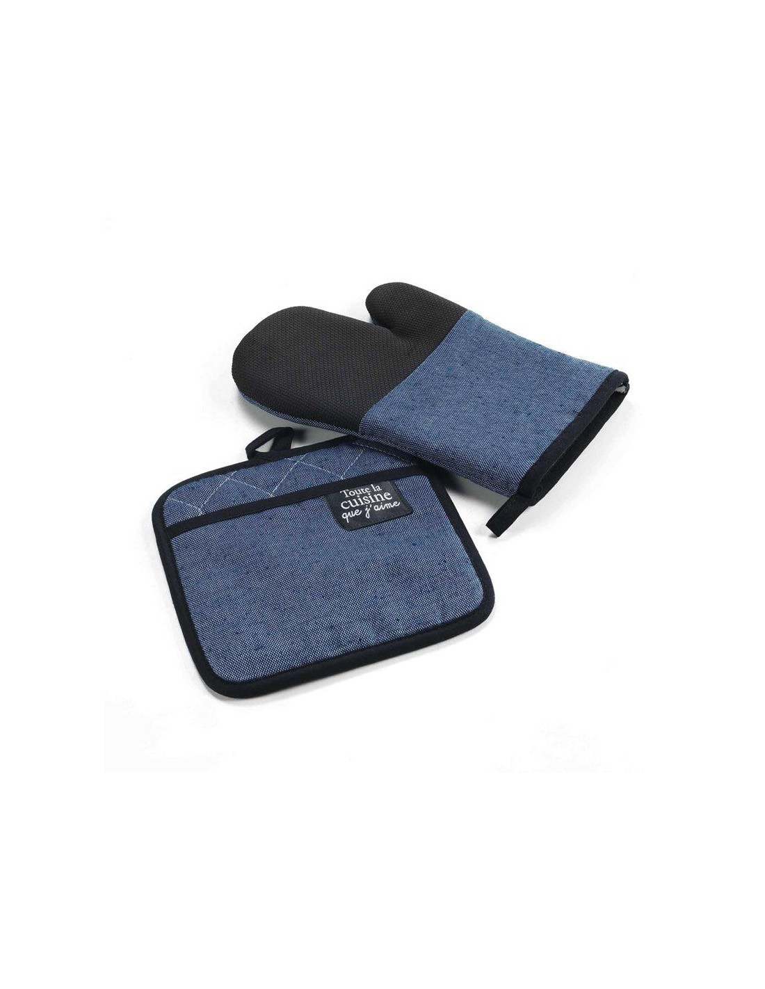 gant + manique 18 x 28 cm/20 x 20 cm chambray uni+pvc harold rouge