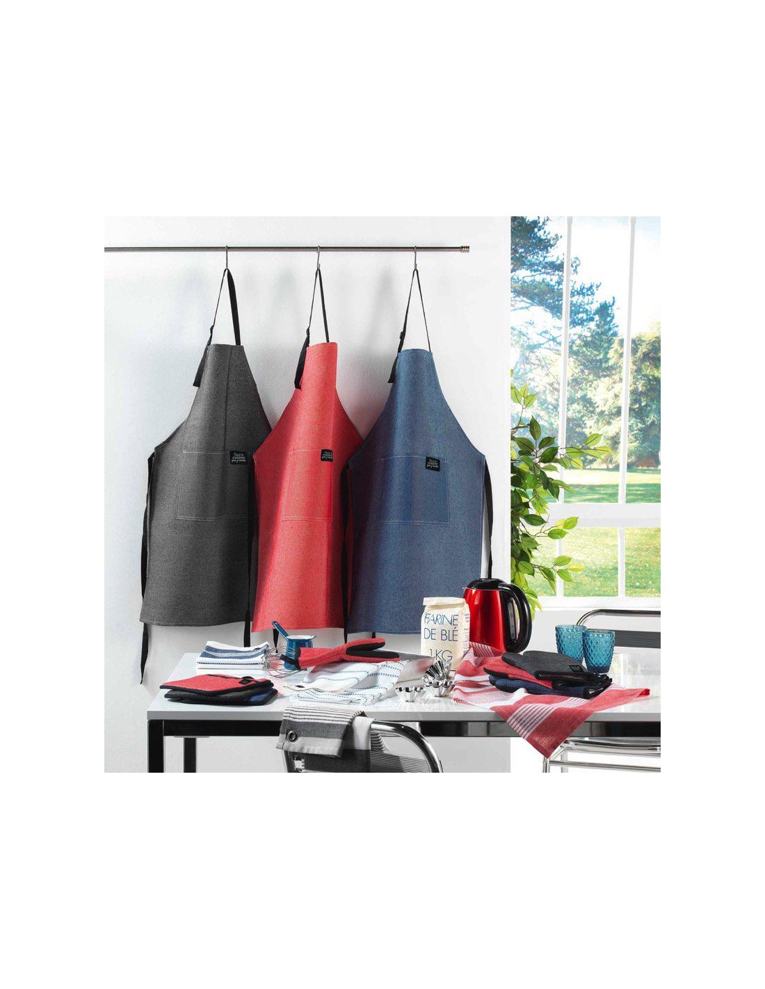 gant + manique 18 x 28 cm/20 x 20 cm chambray uni+pvc harold bleu