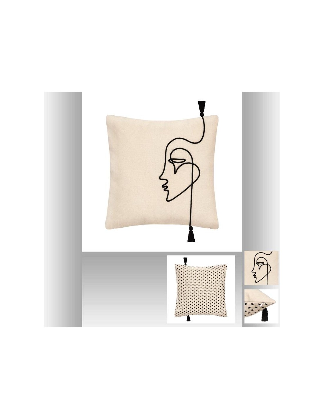 1609408- housse coussin pompons +encart 40 x 40 cm coton imprime cruzabel des. p