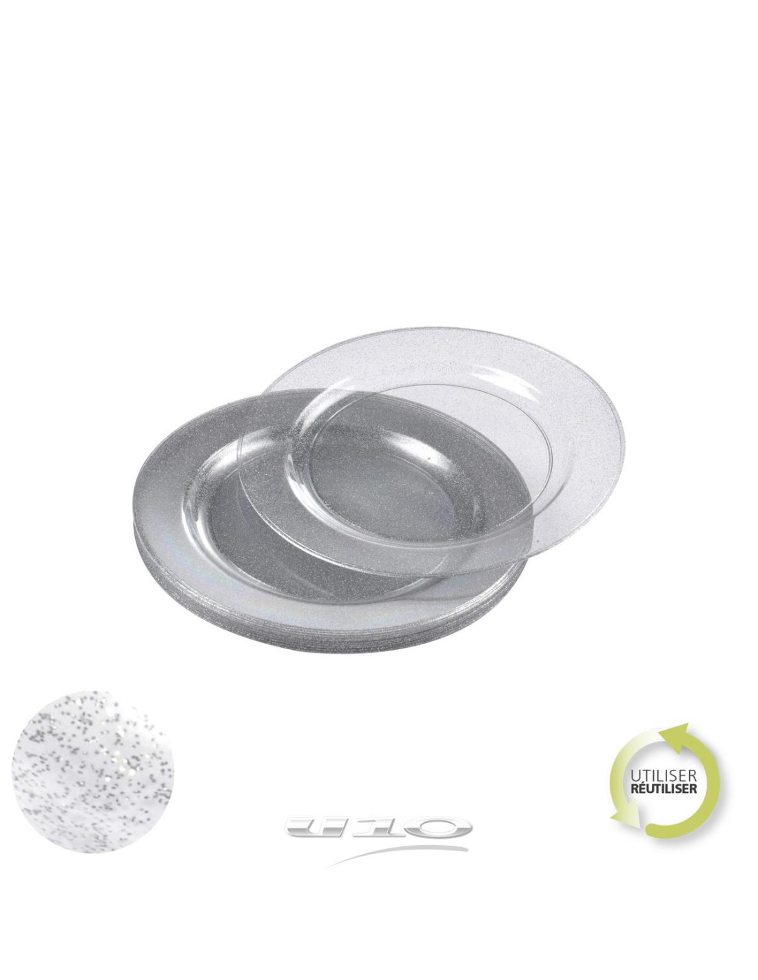 6asj110ag - set de 6 assiettes en plastique reutilisable d23cm paillete argent