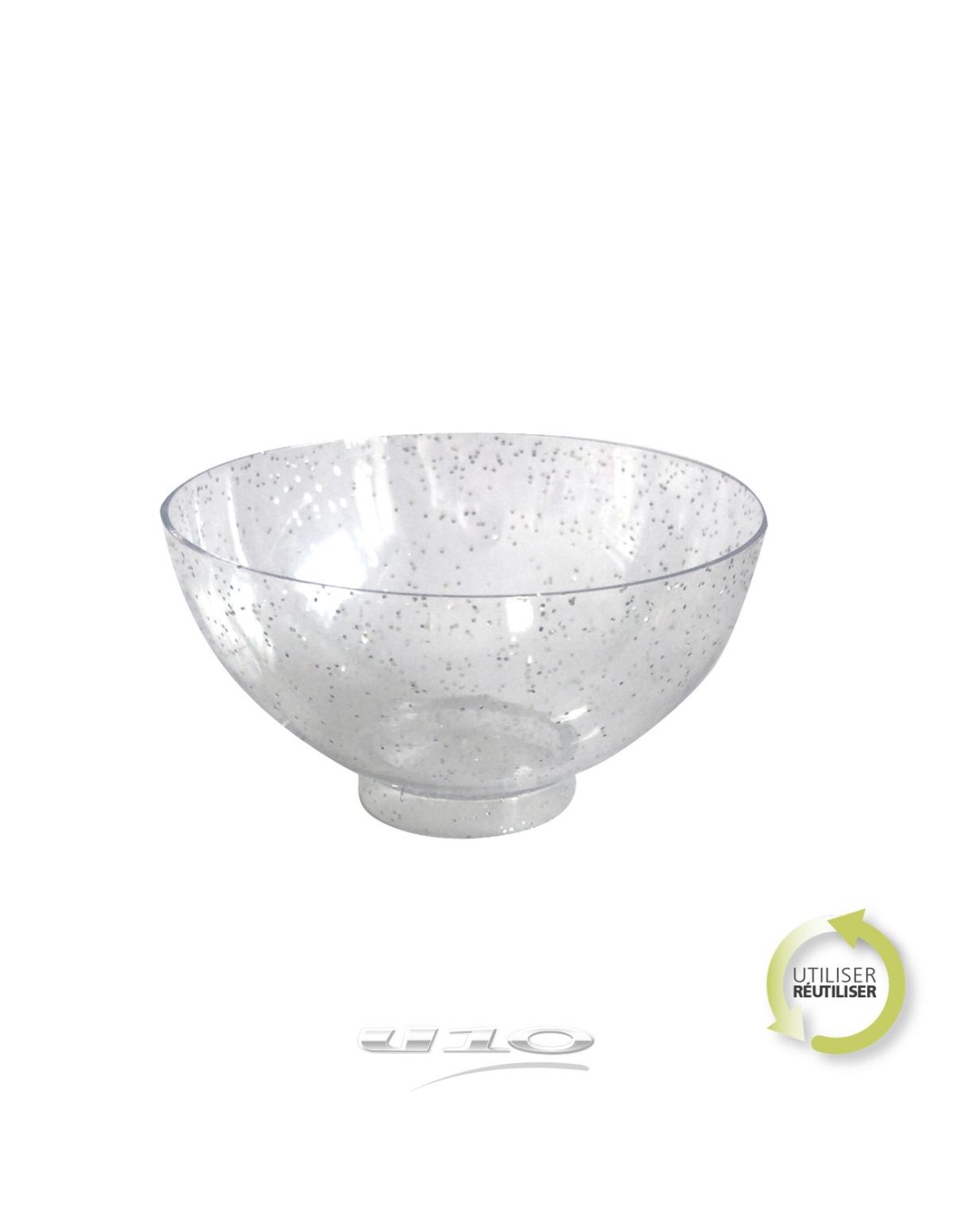 6asj101ag - set de 6 assiettes en plastique reutilisable 18cm paillete argent