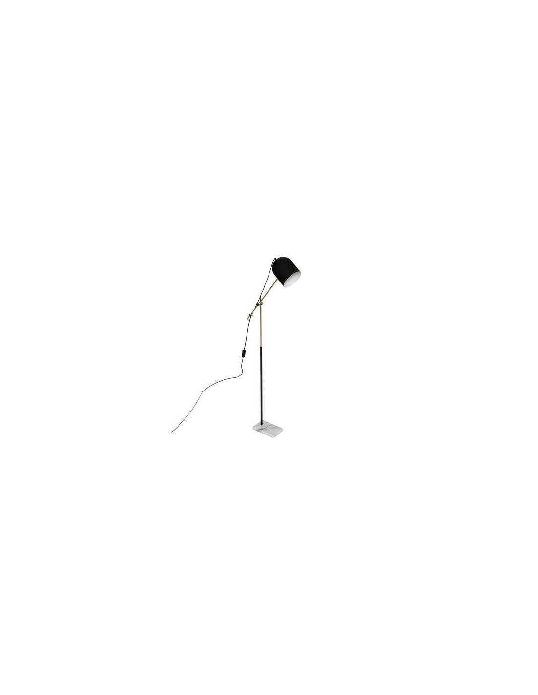 Lampadaire trépied métal E2740W abat jour PVC noir/doré. Dimensions : 34 x 34 x H140 cm
