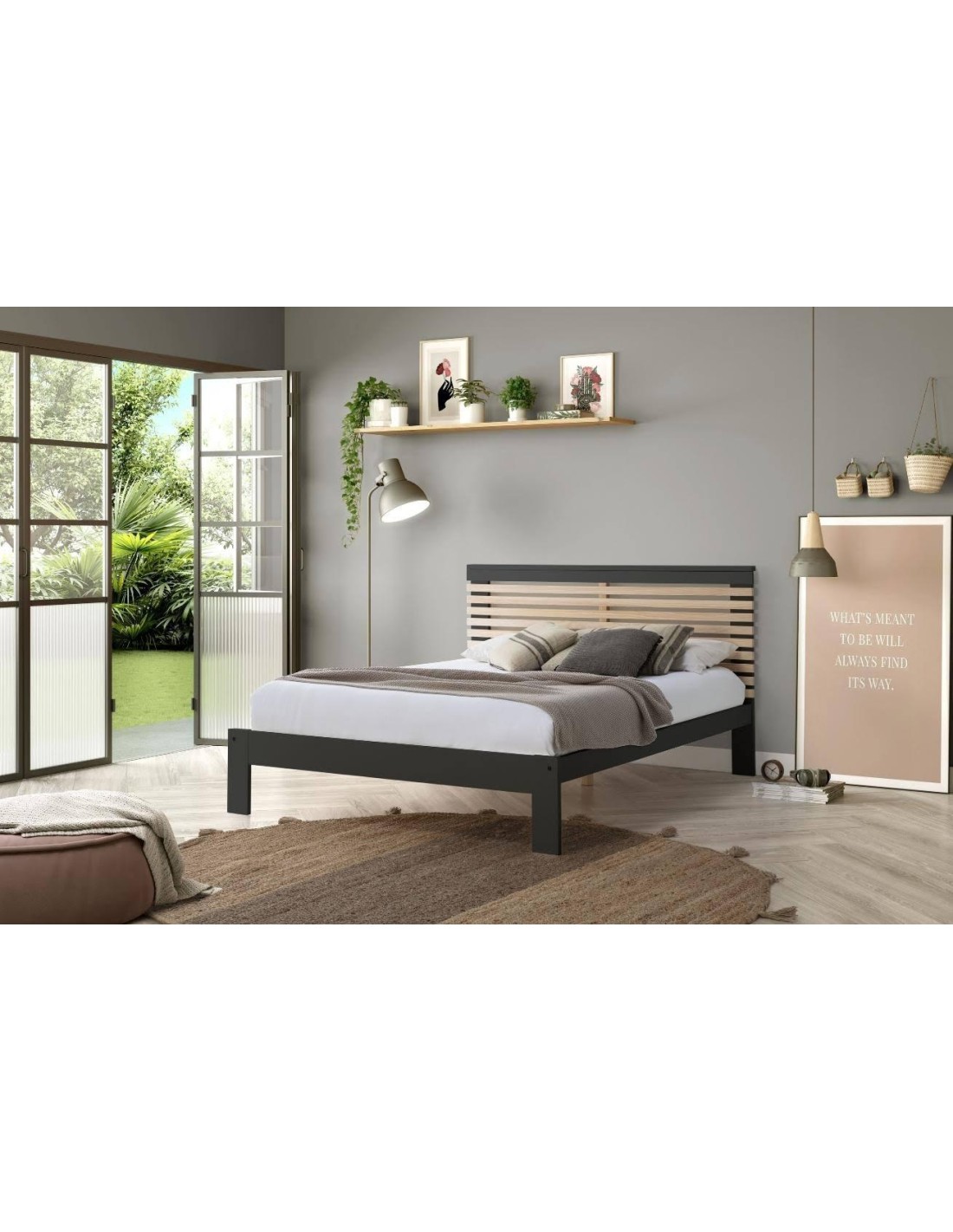 15025 - lit vectra 140x190 anthracite/chéne a/sommier
