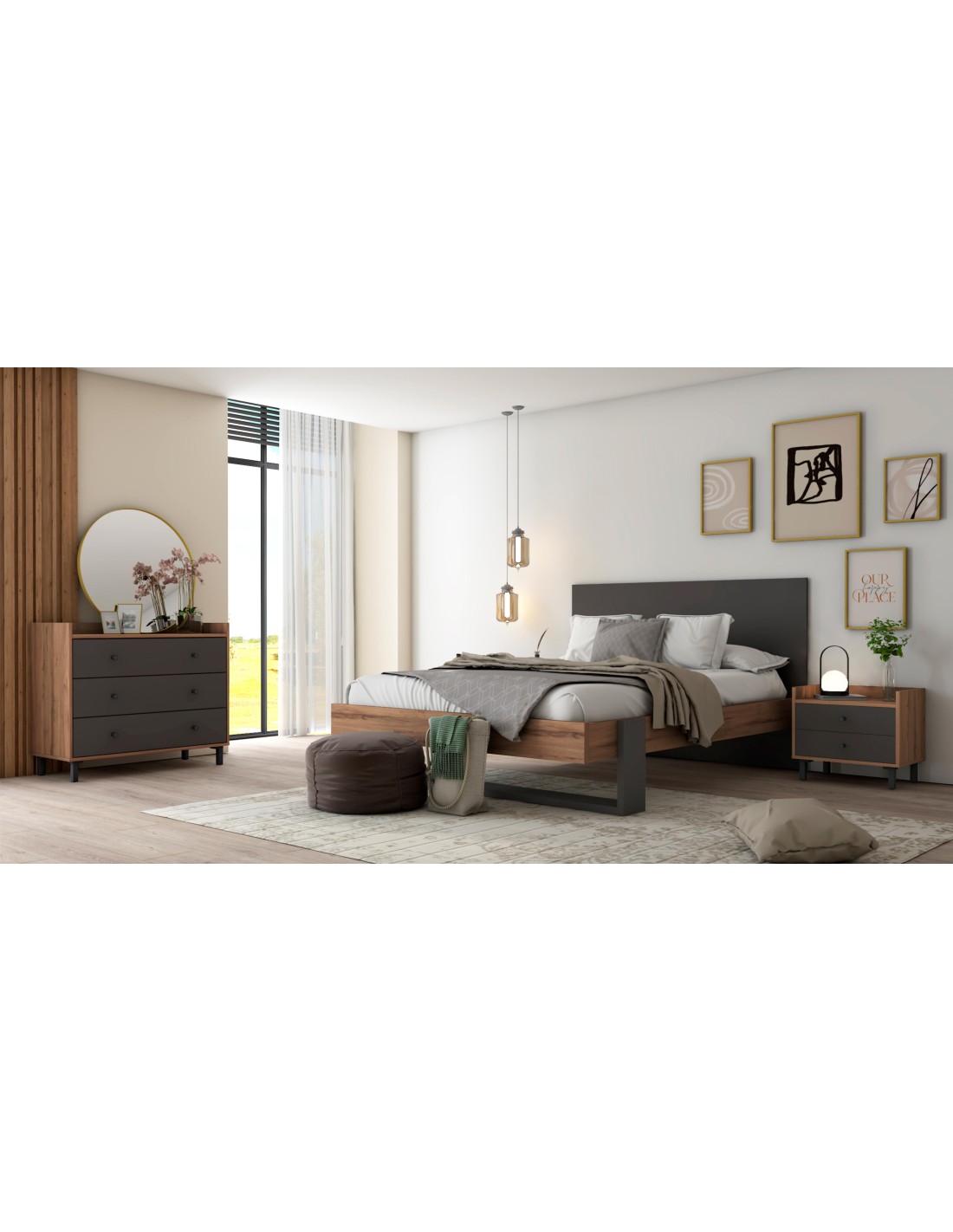 16151_ex - lit coros 140x190 noyer sabi/ardoise