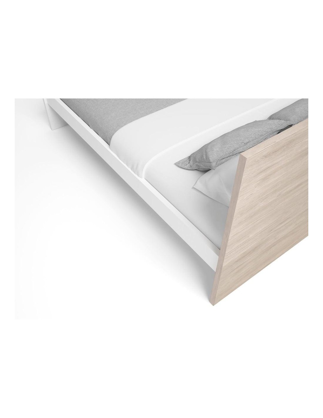 Structure en mélaminé effet chéne clair et blanc mat. Sommier et matelas non inclus.Dimensions des éléments (en cm) : 205,6 x 173,2 x h100cm.Structure en mélaminé effet chéne clair et blanc mat.Sommier et matelas non inclus.Dimensions des éléments (en cm) : 205,6 x 173,2 x h100cm.