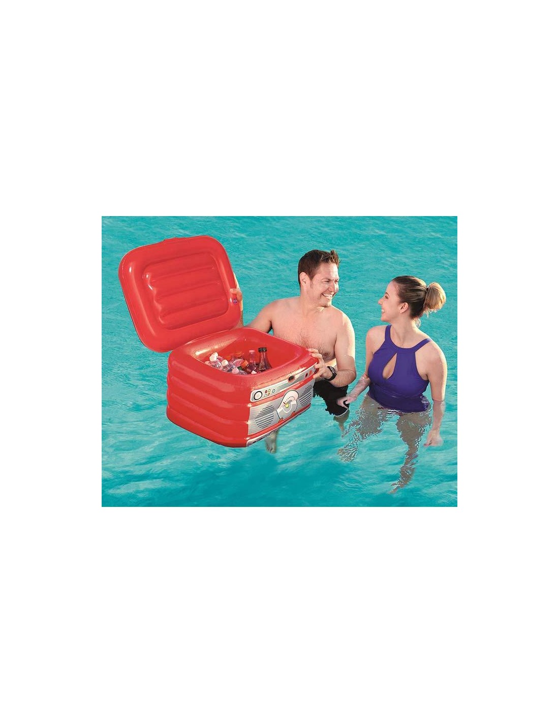 composition du produit:structure : 100% vinyle.descriptions générales: glaciere gonflable bar flottant.. parfait pour profiter de la plage ou de la piscine. dimension 88 cm / 77 cm vinyle prétesté 0.22m glaciére gonflable 34.5 30 cm. 4 supports de verres. rustine de réparation incl