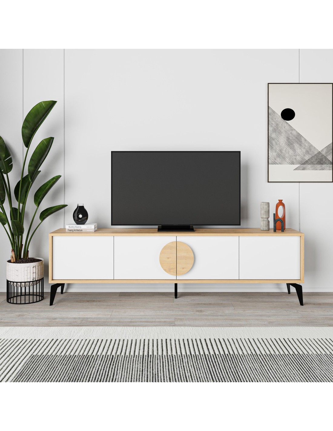 17029 - meuble tv vae 2p 140cm chéne/blanc