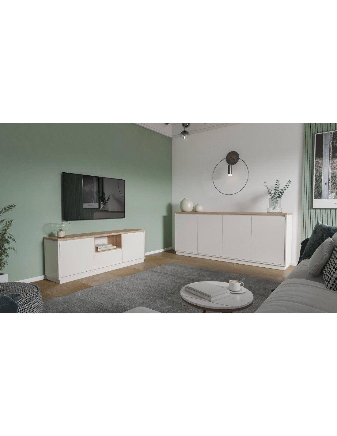 Dimensions meuble TV : 161 X 40 X 55 CMDimensions buffet 4 portes : L 201 X l 40,1 X H 84,4 CMDimensions buffet 3 portes : L 151,2 X l 40 X H 83,9 CMMatiére : MELAMINEDimensions meuble TV : 161 X 40 X 55 CMDimensions buffet 4 portes : L 201 X l 40,1 X H 84,4 CMDimensions buffet 3 portes : L 151,2 X l 40 X H 83,9 CMMatiére : MELAMINE