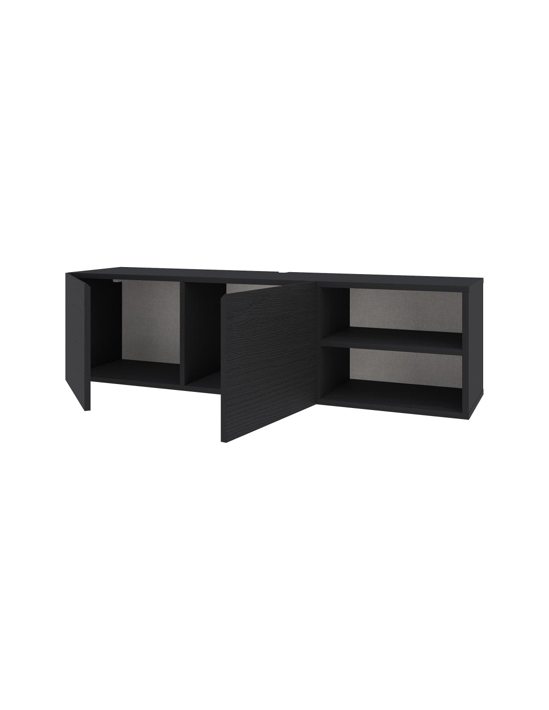 Meuble Noir en 2portes et 3 niches de rangement.Pieds en métal noirDim.: 160x 40 x 55,60 cmMeuble Noir en 2portes et 3 niches de rangement.Pieds en métal noirDim.: 160x 40 x 55,60 cm