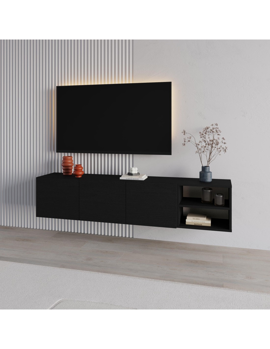 Meuble TV suspendu :4 portes 180 cm LECCE effet travertinLes + produits :-Finition effet travertin 100% tendance.-Meuble TV suspendu afin de garder un intérieur épuré.-Dimensions idéales pour les grands espaces.Dimensions du meuble 4 portes :Longueur : 180 cm Largeur : 35 cm Hauteur : 38,5 cmDimension du meuble 3 portes :Longueur : 140 cm Largeur : 35 cm...