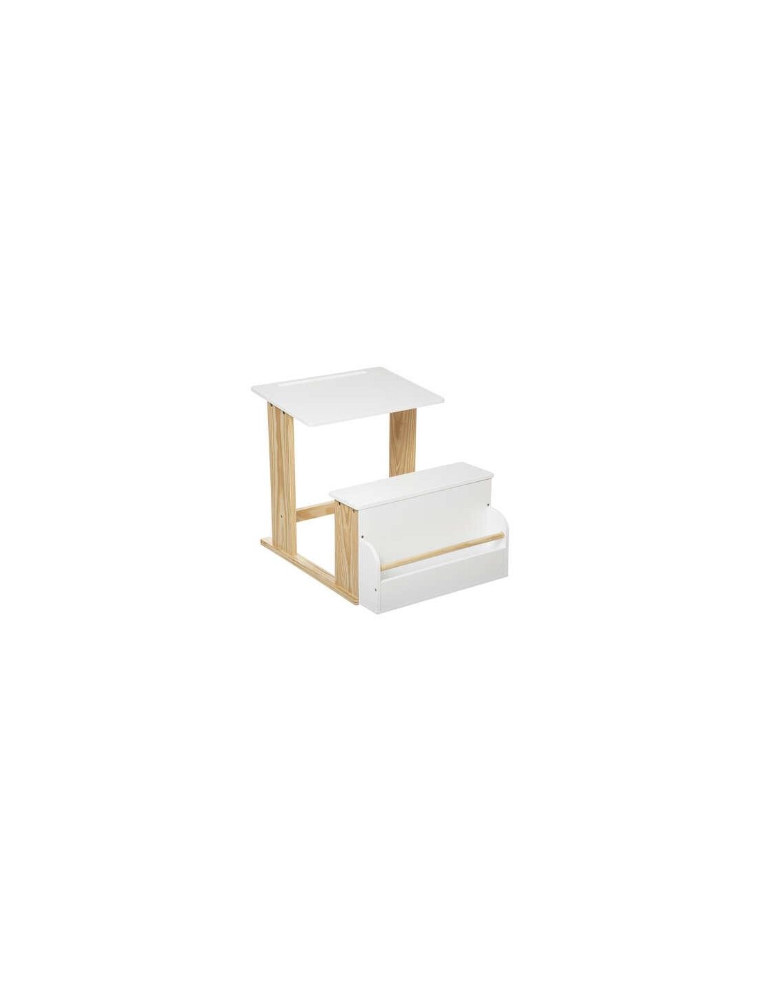 Table : L. 72 x l. 48 x H. 52,3 cm Chaise : L. 26,8 x l. 36,4 x H. 56,3 cm Bac : L. 29 x l. 20 x H. 13 cm