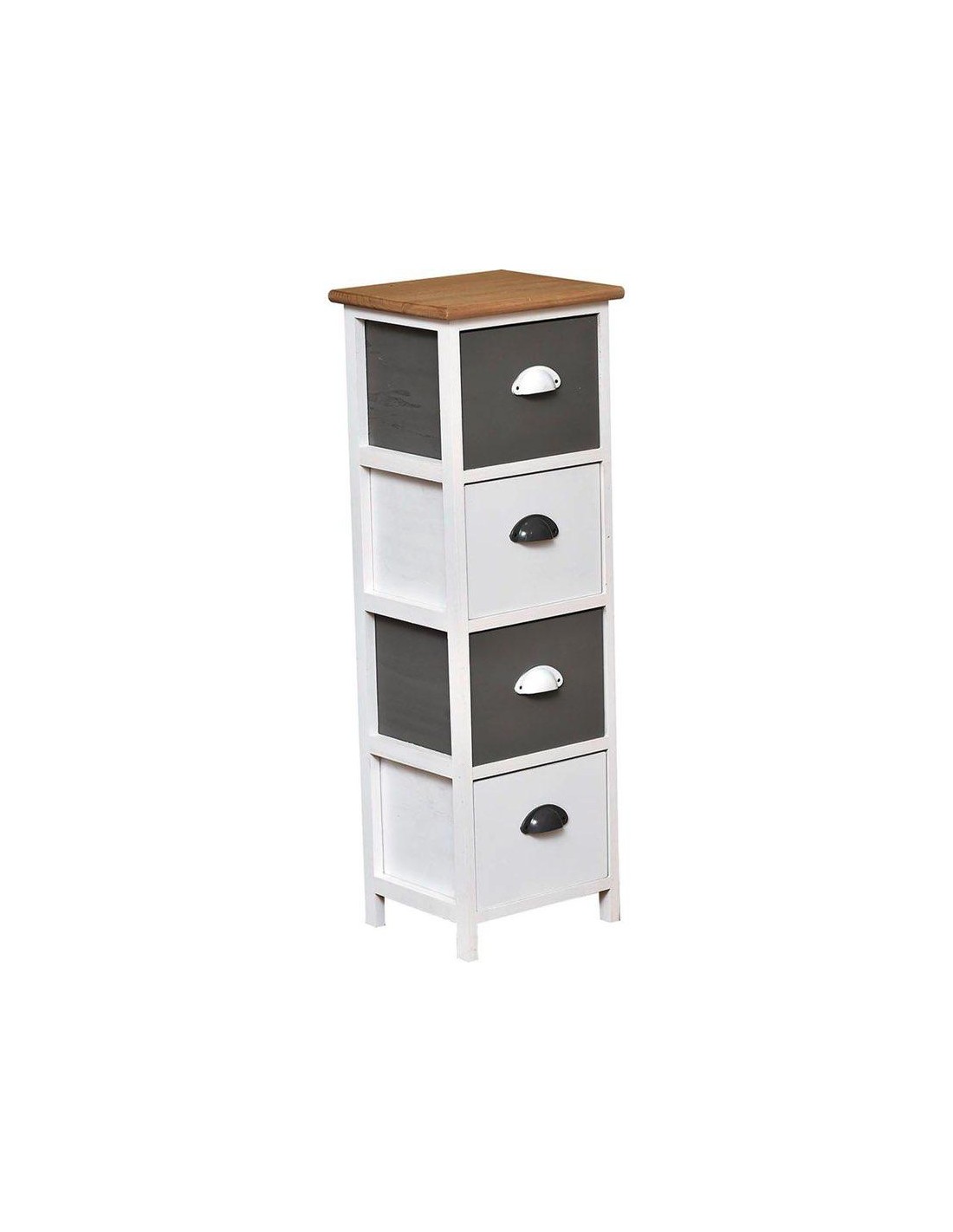 meuble paulownia/mdf 4 tiroirs avec poignees metal - naturel/gris/blanc