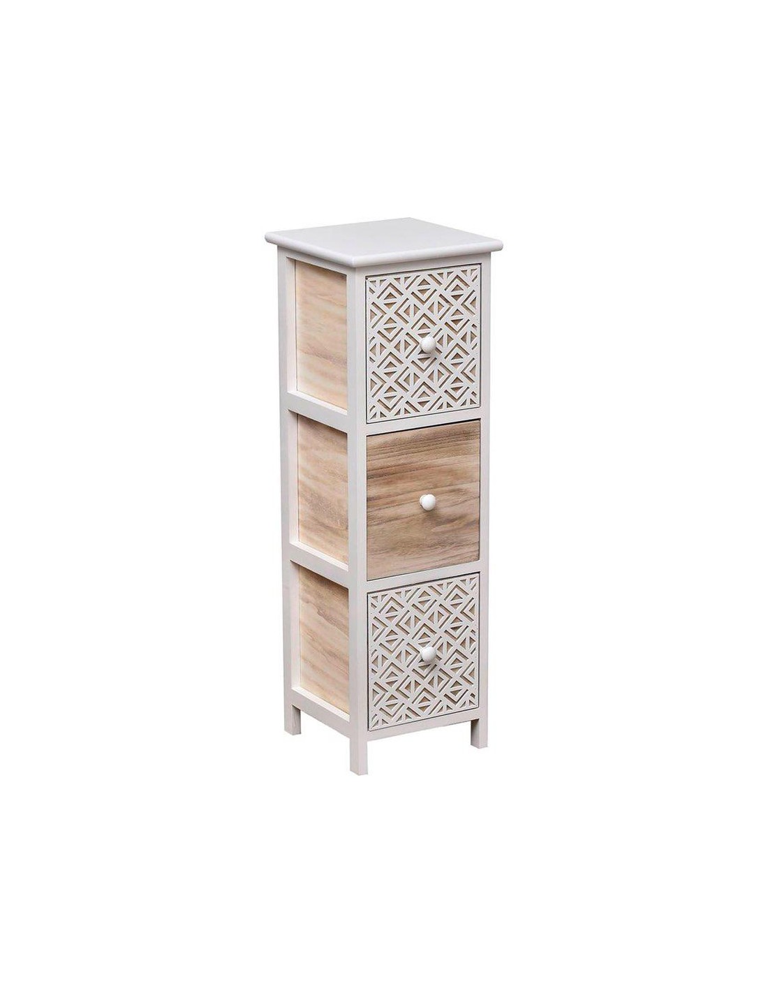 9852190 - meuble mdf/paulownia pm 3 tiroirs avec poignees bois - blanc/naturel g