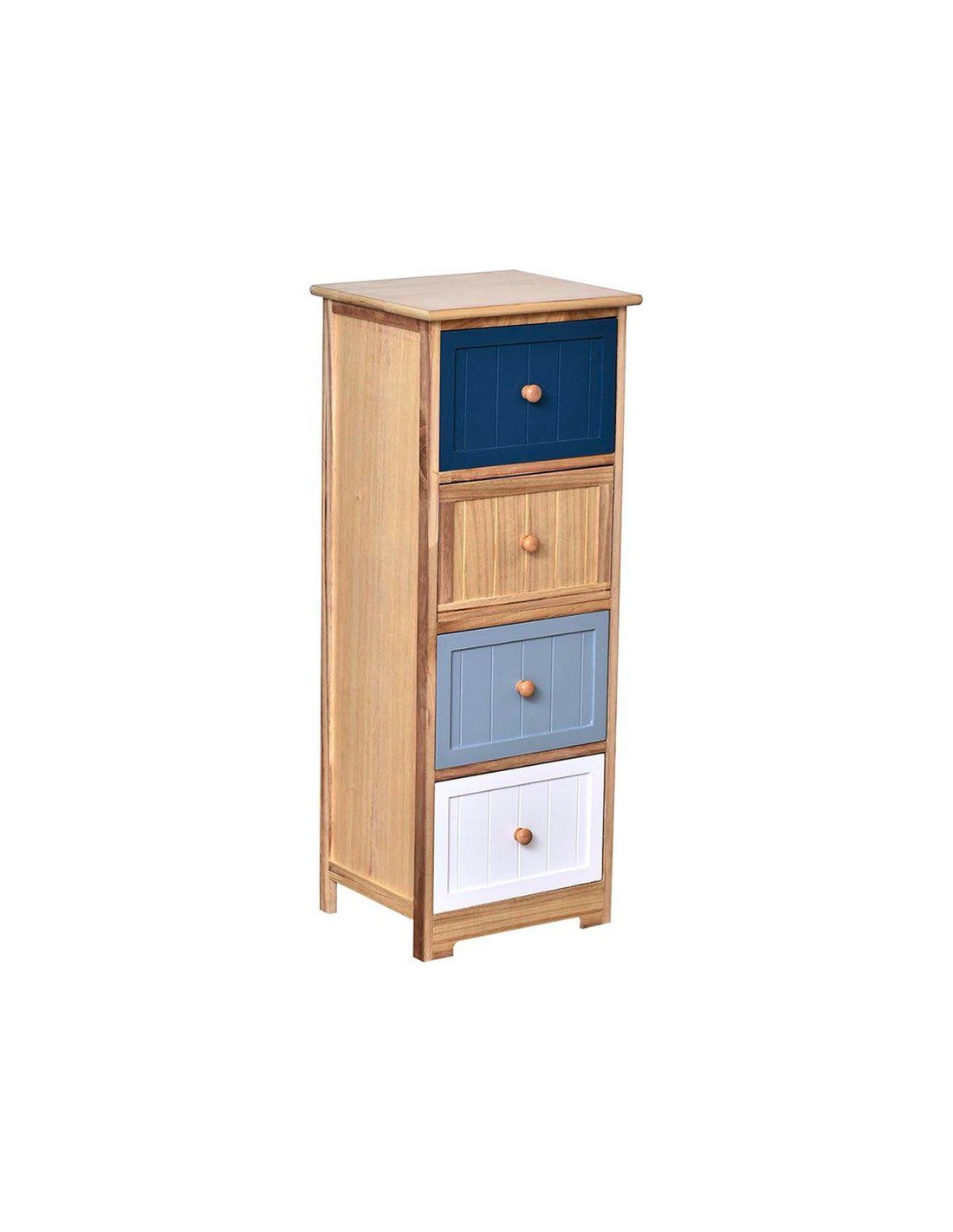 meuble mdf/paulownia 4 tiroirs avec poignees boutons ronds - naturel/bleu/blanc
