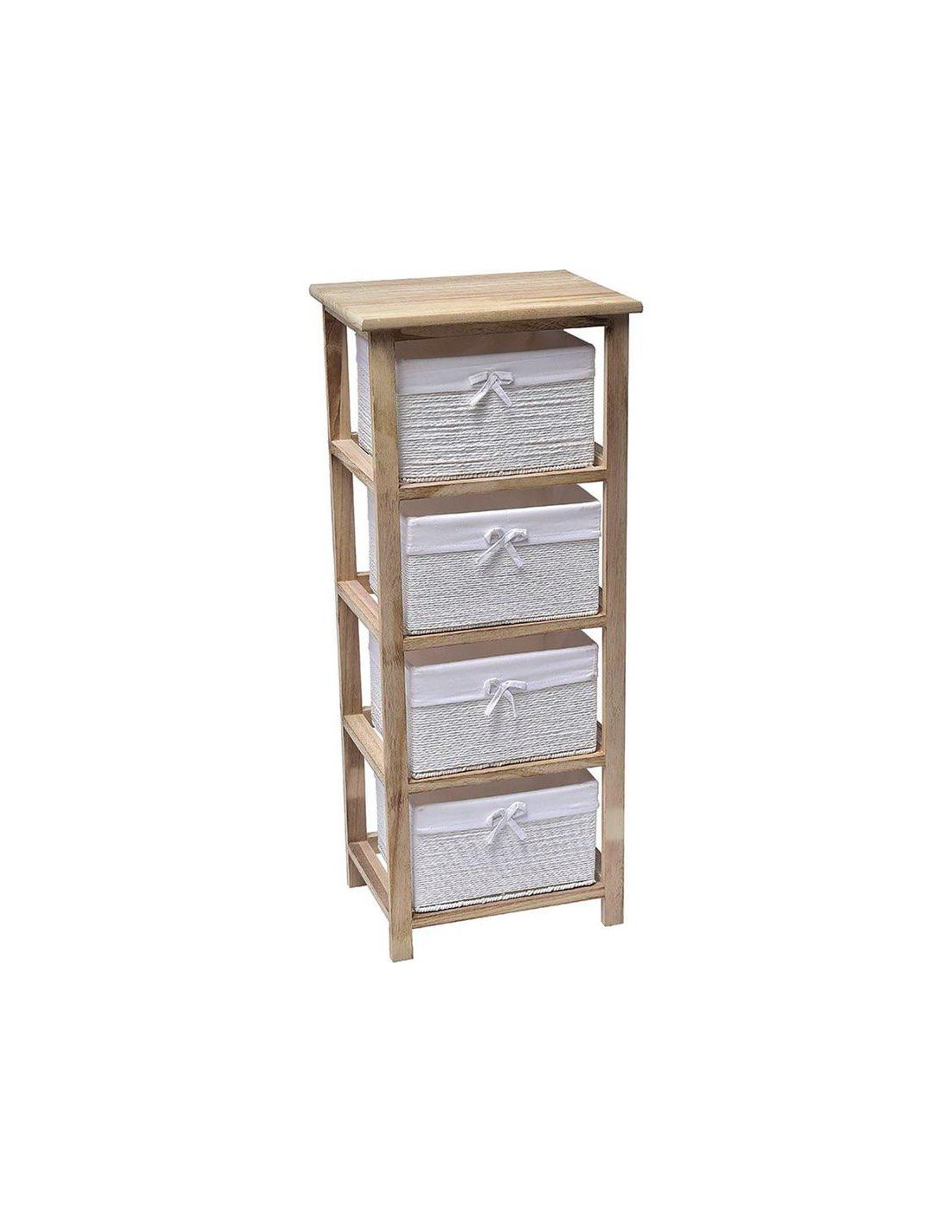 meuble mdf gm bois 4 paniers papier tresses - naturel/blanc
