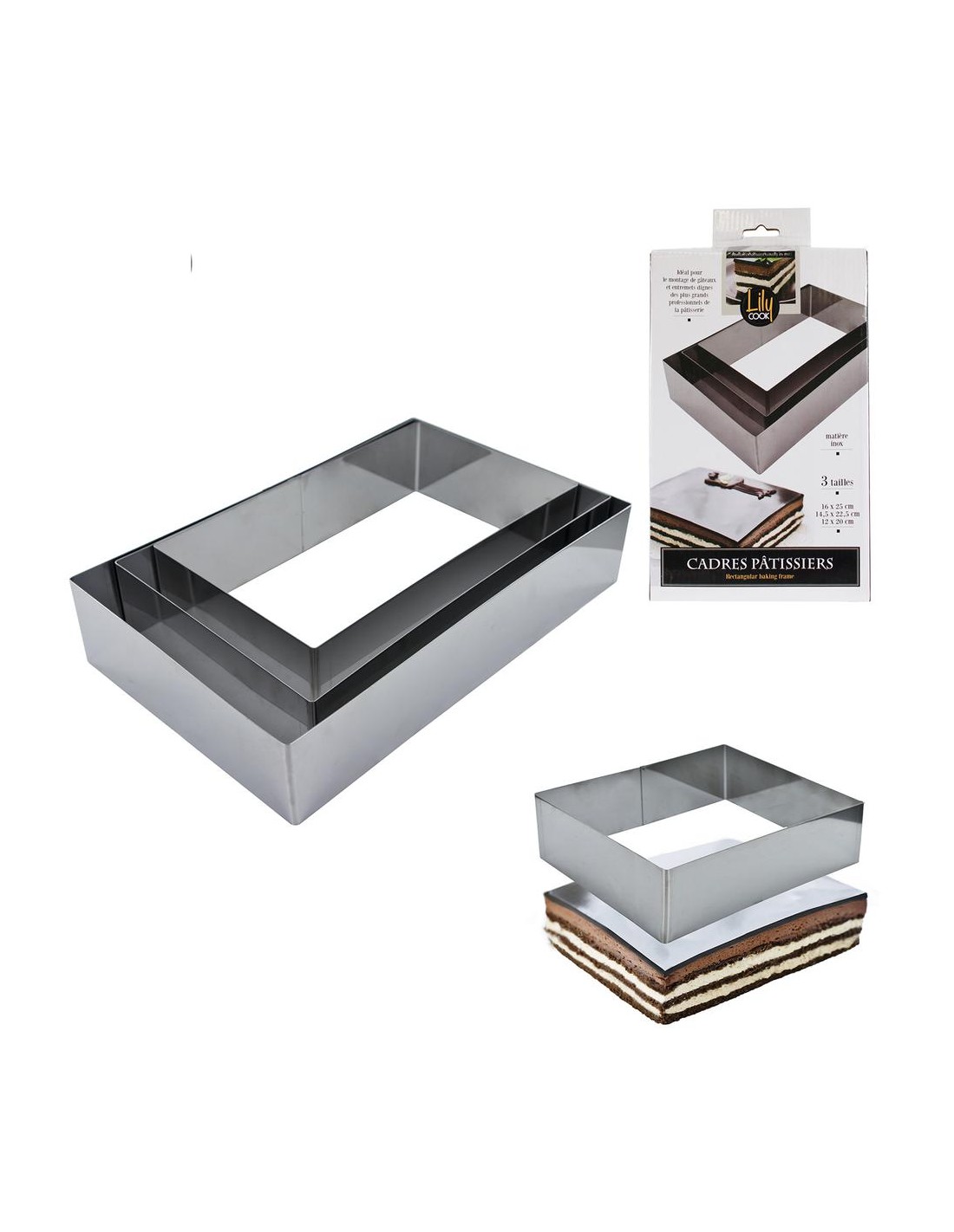 Pour une cuisson uniforme de vos mets, optez pour ce cadre de patisserie ! Perforé, il permet l'évaporation de l'eau et le démoulage de la péte ! - Matiére : acier inoxydable - Format : carré Format du produit 2.50 x 18.00 x 18.00