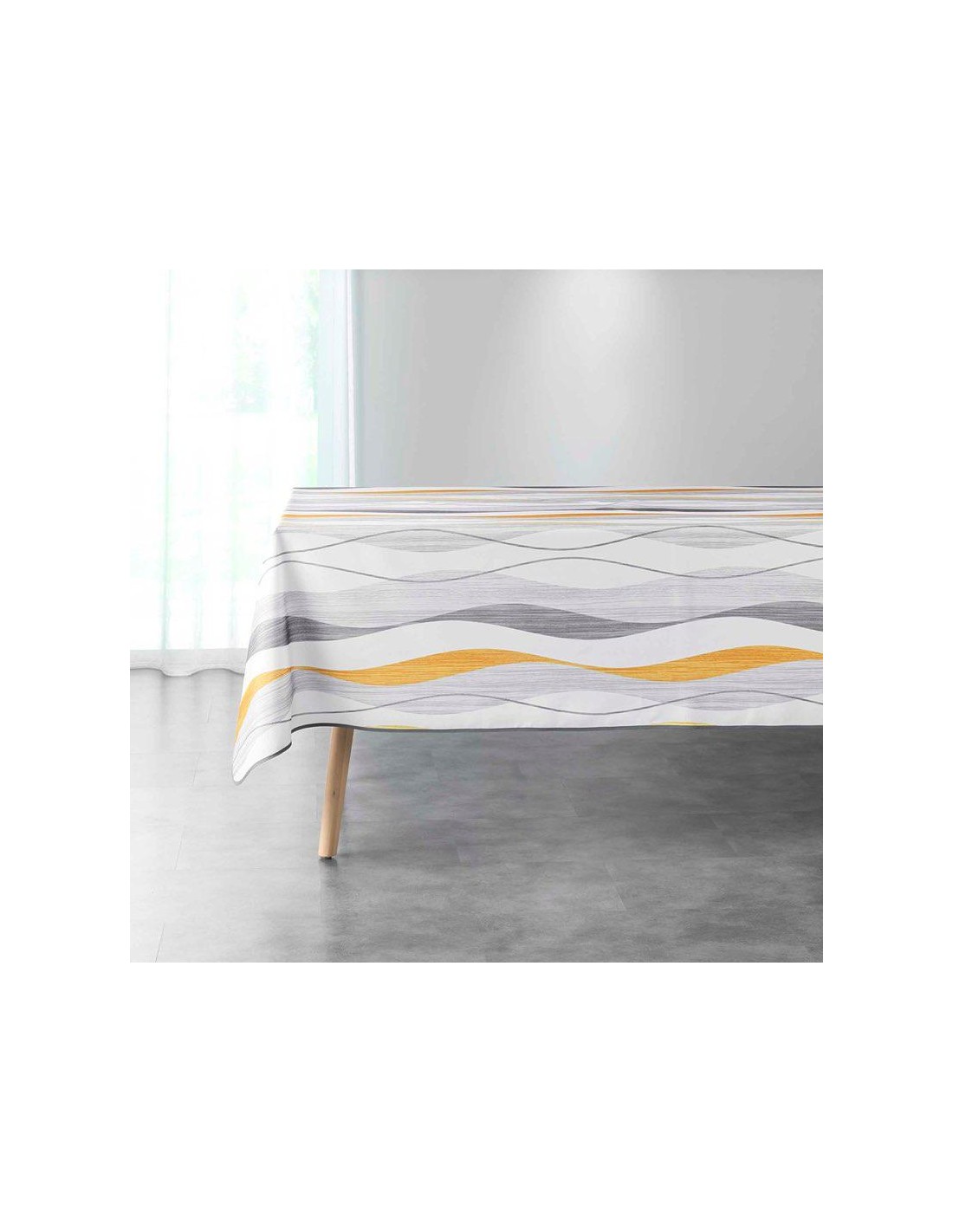 1722853-nappe rectangle 150 x 200 cm polyester imprime ondulys blanc/jaune