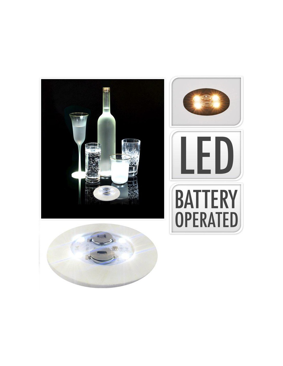 Dimensions : L. 29 x P. 5 x H. 29 cm - Fonctionne é pile, 2xAAA non incluses - Ampoules : 20L BLANC CHAUD