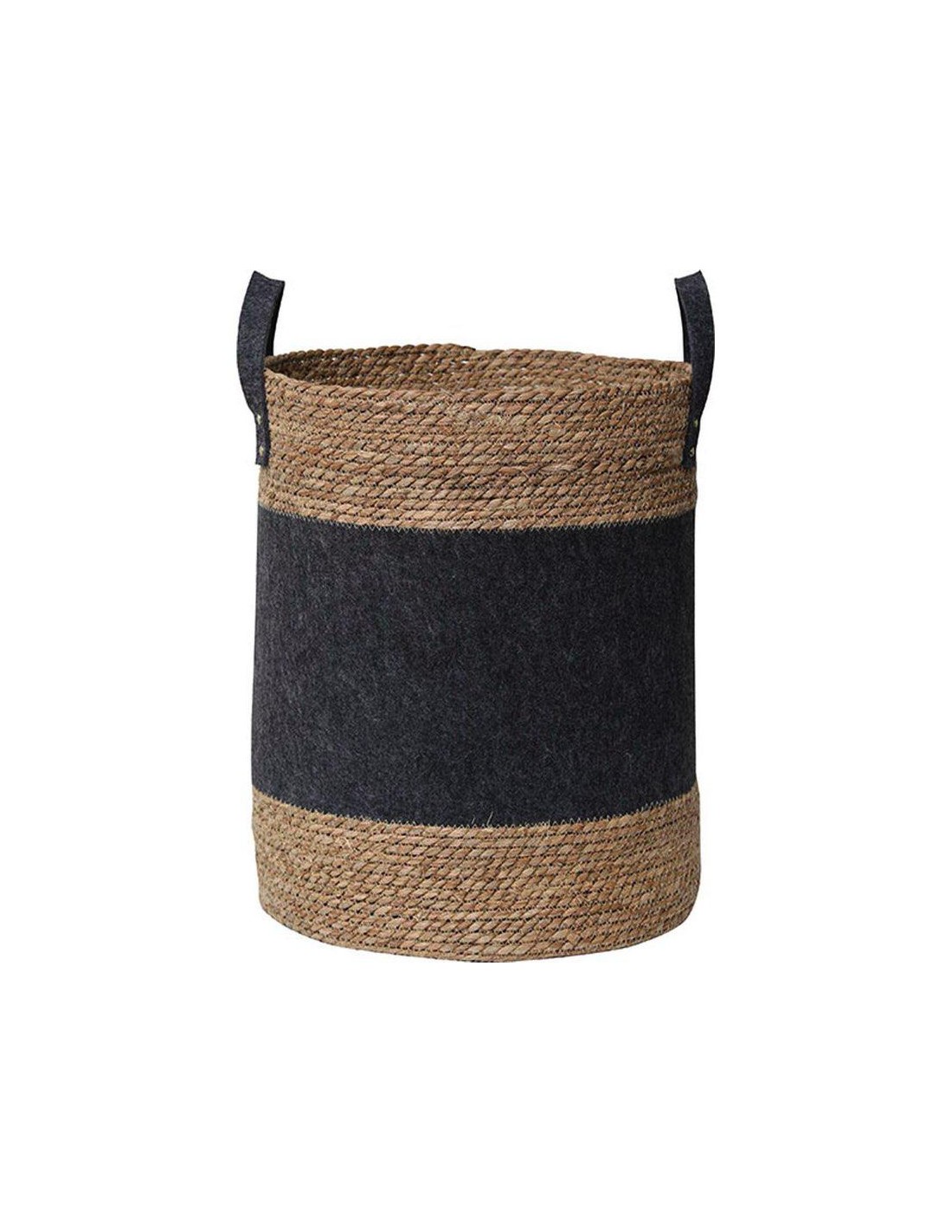 grande paniere a linge ronde papier diam 44 x h56.5 cm - gris / tissu gris