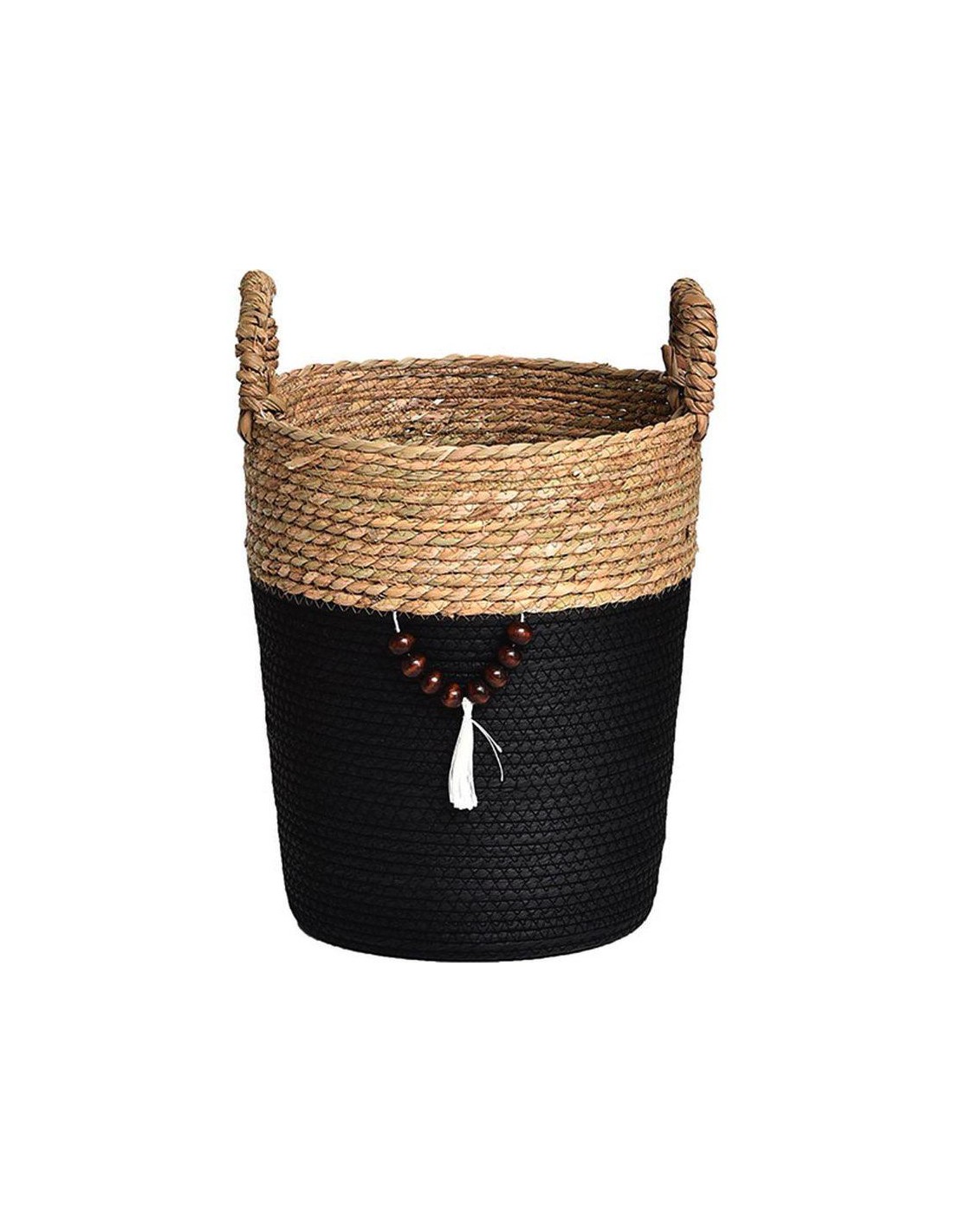paniere ronde mm matiere vegetale et papier 45x32 cm - blanc/naturel/noir