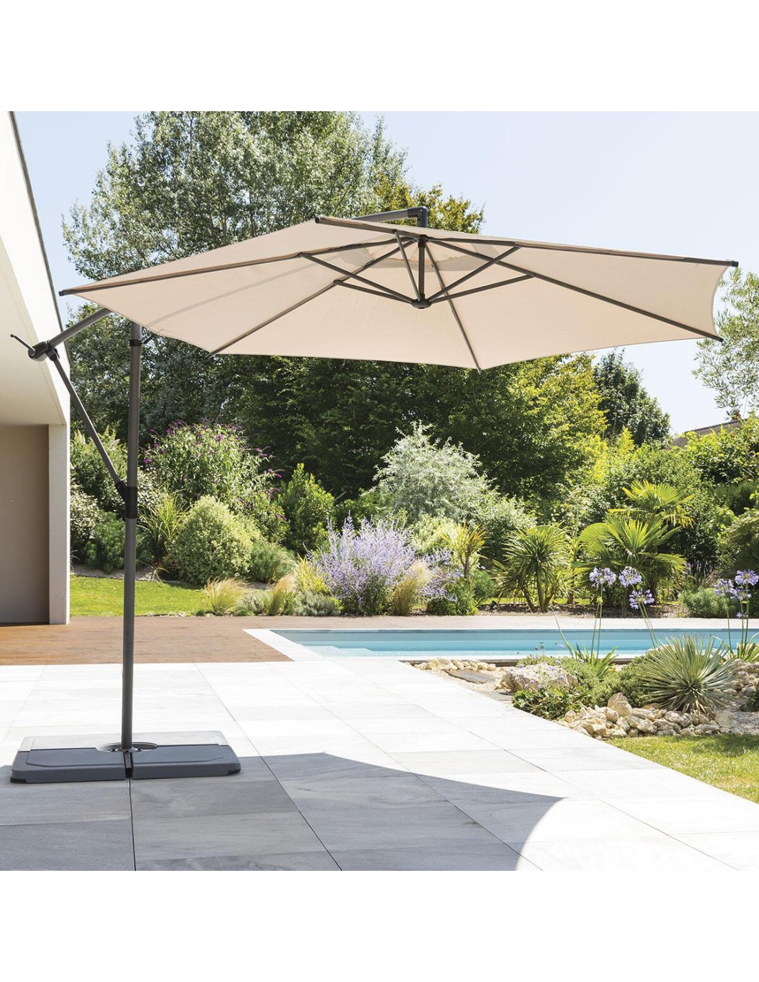 Conéu en aluminium, le parasol déporté "Equador" protégera votre extérieur du soleil avec style. Si le parasol est avant tout destiné é protéger du soleil, il est aussi un élément de décoration é part entiére ! Gréce é sa manivelle, les manoeuvres d'ouverture et de fermeture seront un jeu d'enfant. également inclinable et doté d'un systéme de rotation é...