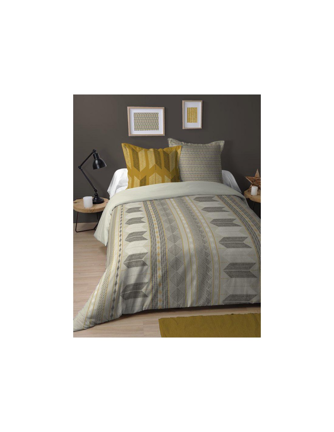 Dimension produit: L. 240 x P. 260 x H. 0,3 cm Détail dimensions: Taies d'oreillers : L. 65 x l. 65 x H. 0.3 cm Housse de couette : L . 240 x l. 260 x 0.3 cm Nombre de fils/cmé : 57 fils Type fermeture : Boutons Matiére: COTON
