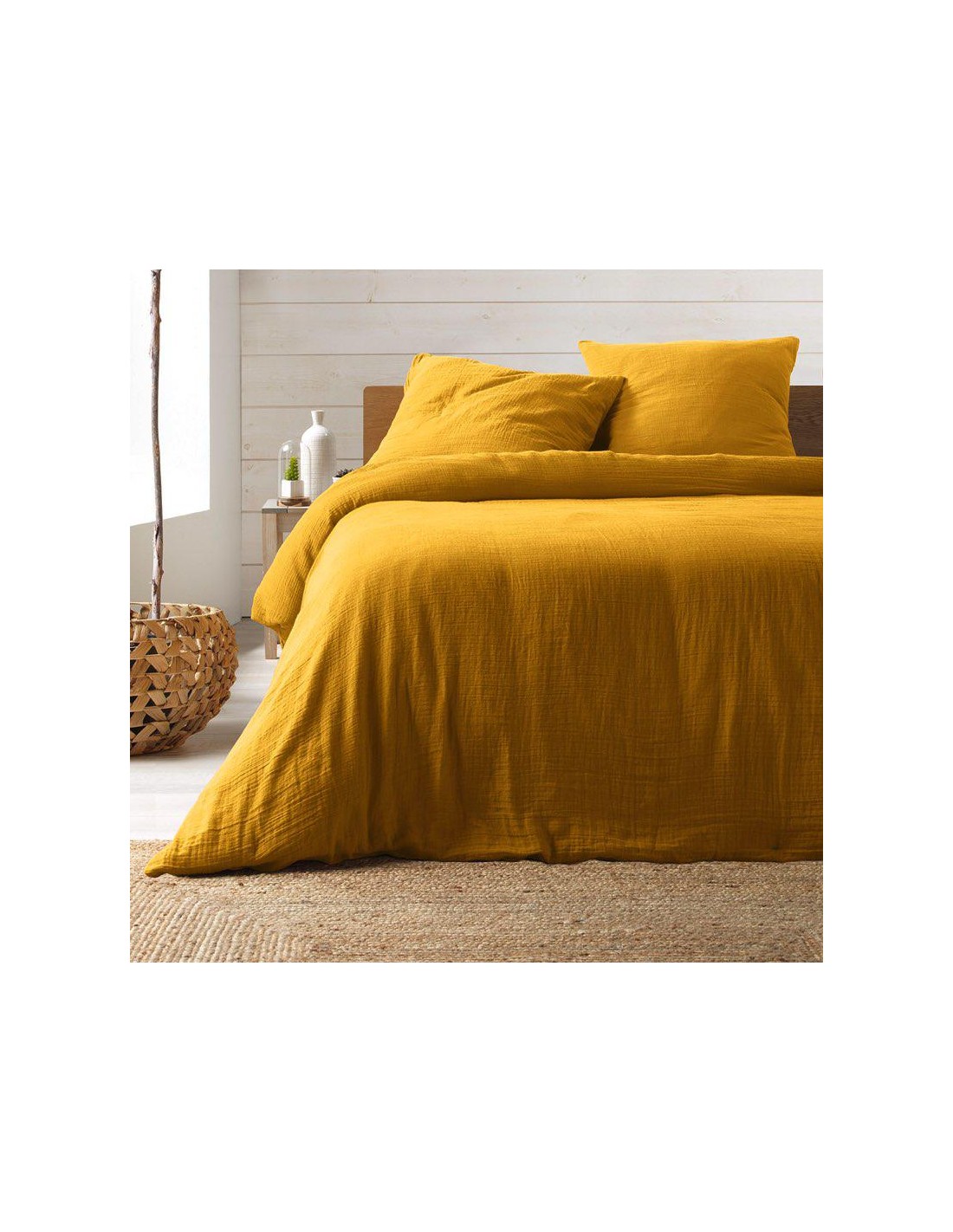 Dimension produit: L. 240 x P. 220 x H. 0,3 cm Détail dimensions: Taies d'oreillers : L. 65 x l. 65 x H. 0.3 cm Housse de couette : L . 220 x l. 240 x 0.3 cm Nombre de fils/cmé : 57 fils Type fermeture : Boutons Matiére: COTON