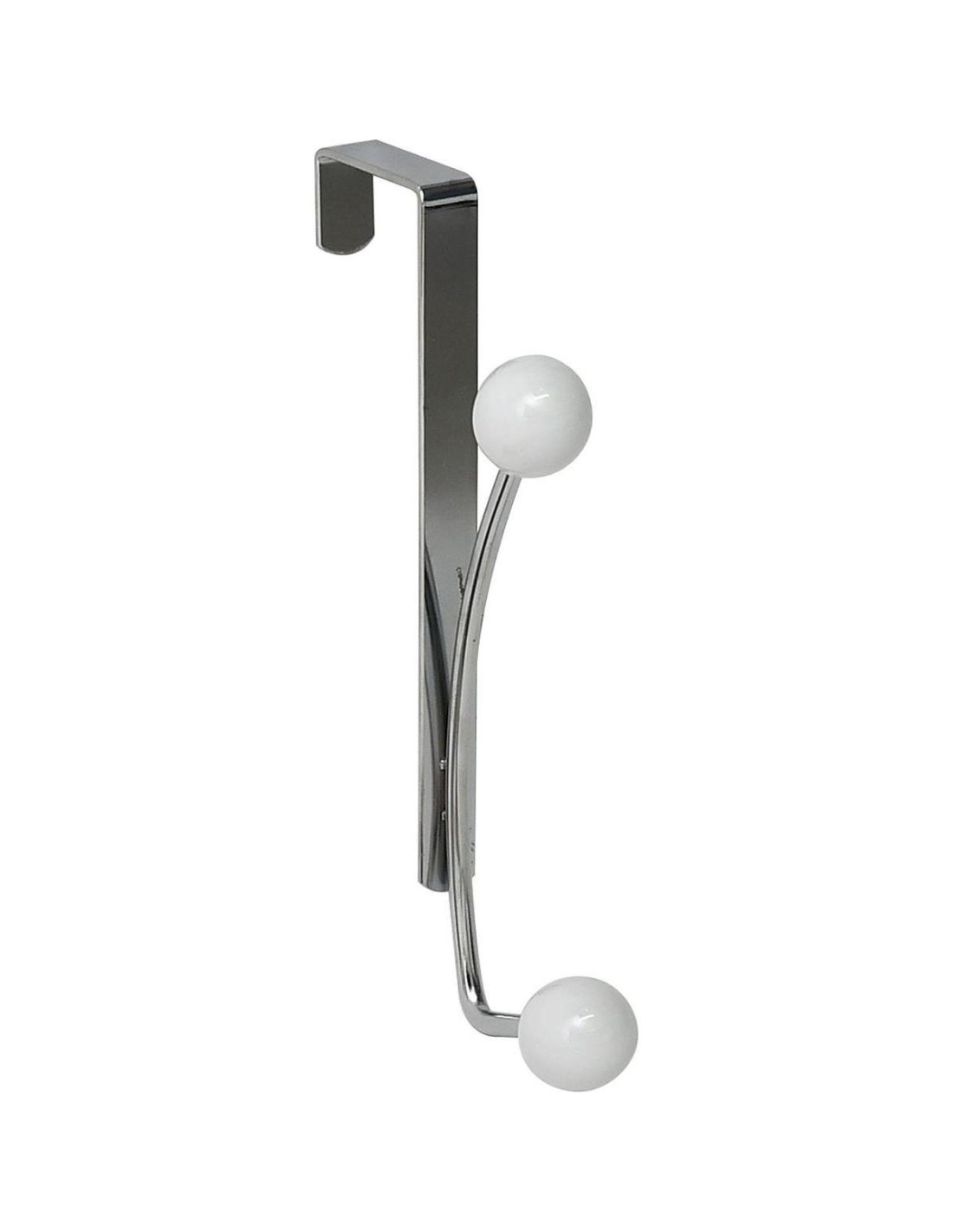 9635100 - patere metal 3 crochets a fixer decoration resine blanche - chrome/bla