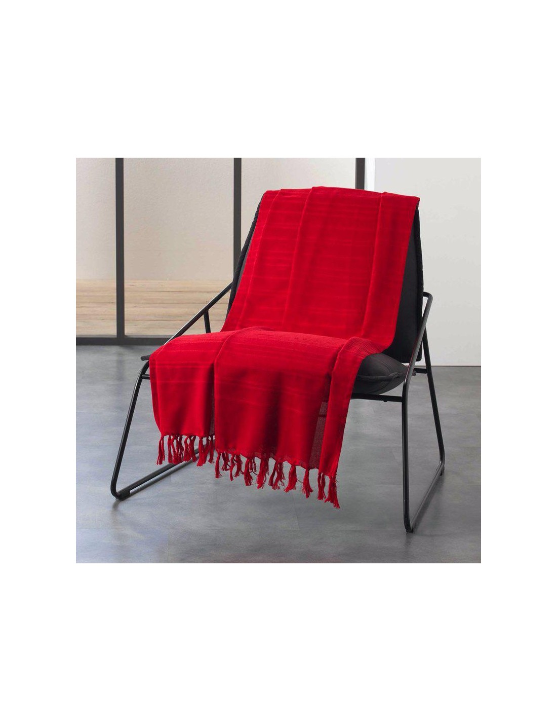 jete de fauteuil a franges 150 x 150 cm coton tisse lilia terracotta