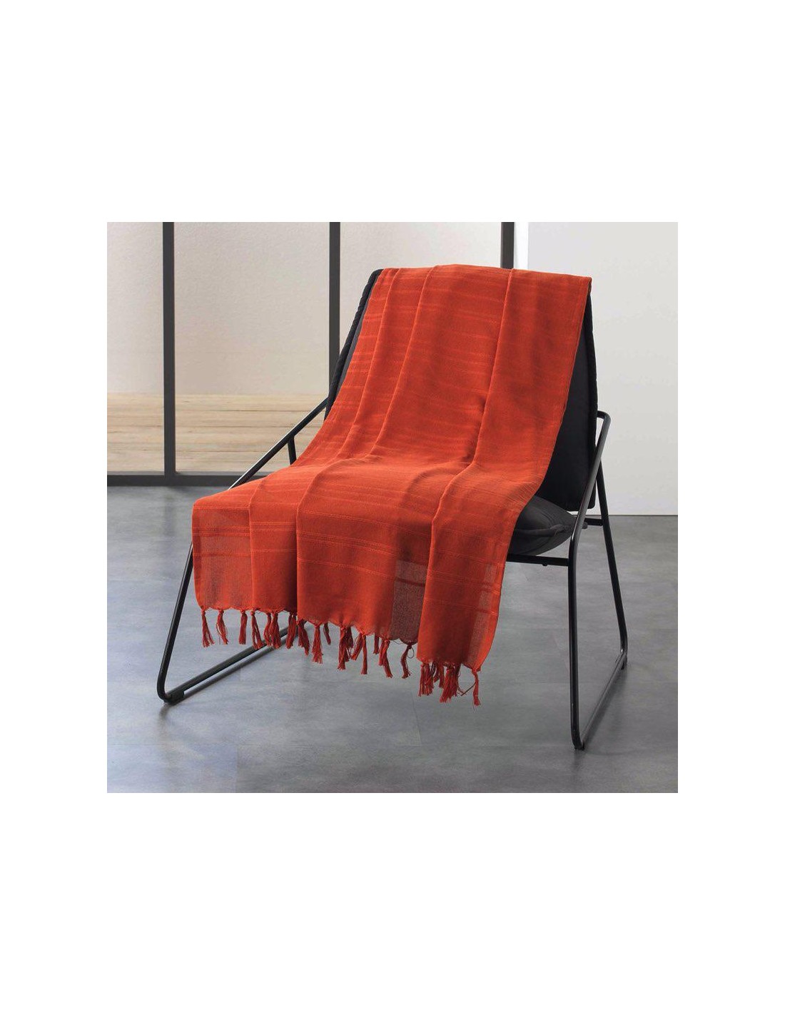 1609602-plaid a franges 125 x 150 cm acrylique coraline terracotta