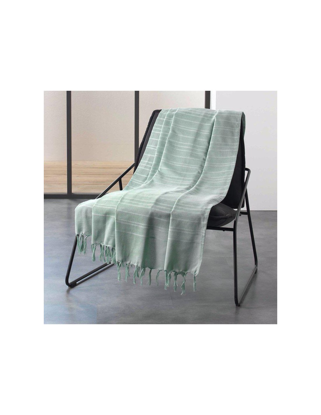jete de canape a franges 180 x 220 cm coton tisse lilia vert d'eau